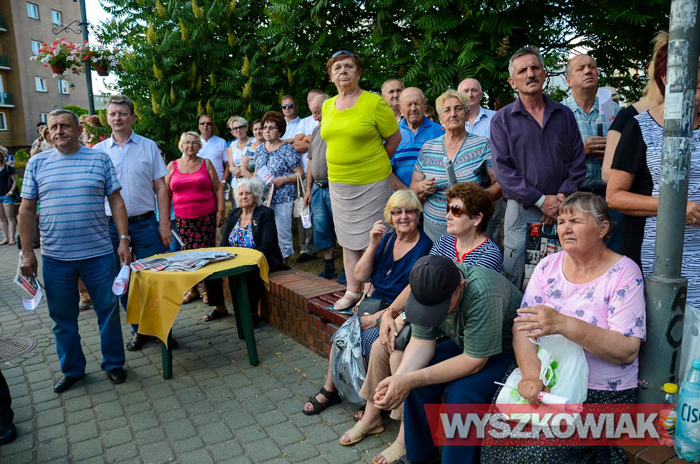 Beata Szydło rozpoczęła swoją wizytę w naszym mieście od spotkania w Zakładzie Doskonalenia Zawodowego ze strajkującymi niedawno pielęgniarkami. Tam witali ją także członkowie lokalnego PiS-. Bezpośrednio stamtąd tzw. szydłobusem sztab PiS pojechał na skwer przy fontannie, gdzie na kandydatkę na premiera oczekiwało wielu mieszkańców. To spotkanie bliźniaczo podobne było do tego z kwietnia tego roku, kiedy do Wyszkowa na plac przy ul. Sowińskiego dudobusem przybył ówczesny kandydat na prezydenta Andrzej Duda.
