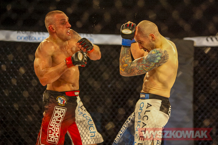 Walka wieczoru (o mistrzostwo wagi średniej – 84 kg PLMMA) – Marcin Naruszczka pokonał Krzysztofa Sadeckiego jednogłośną decyzją sędziów (3x30-29)