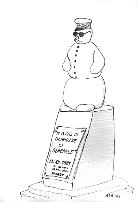 – Jako pracownik poczty odbywałem akurat w grudniu tego roku kilkutygodniowe szkolenie branżowe – wspomina. – Może dzisiaj dla ludzi młodszego pokolenia wyda się to nieco dziwne, ale stan wojenny ograniczał swobodę obywatela w najzwyklejszych, życiowych sytuacjach. Abym mógł opuścić czasowo Wyszków i udać się do Warszawy na szkolenie, musiałem mieć wystawioną specjalną przepustkę, zezwalającą mi na takie przemieszczanie się – dodaje. – Wszystko nagle stanęło na głowie. Zarząd wyszkowskiego MKZ został internowany. Mnie i wielu innym aktywistom z drugiego szeregu udało się uniknąć aresztowań – dodaje. – Myślę, że używanie pseudonimu w jakimś stopniu uchroniło mnie przed internowaniem, bo po wielu już latach dowiedziałem się, że funkcjonariusze bezpieki rozpytywali uporczywie wyszkowskich plastyków, czy mają w swoim środowisku kobietę o imieniu Ada. Na początku 1982 roku nasi koledzy wyszli na wolność, ale doskonale rozumiałem, że będą obserwowani i że to głównie my, nienotowani musimy się teraz zaangażować.