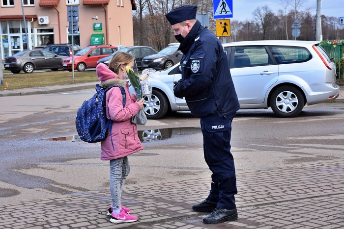 W prezentach przygotowanych specjalnie na Dzień Kobiet znalazły się odblaski - policjanci przypominali o konieczności ich używania, zwłaszcza poza terenem zabudowanym. W rozmowach mundurowi przypominali o możliwości zgłaszania niebezpiecznych sytuacji za pomocą Krajowej Mapy Zagrożeń Bezpieczeństwa.