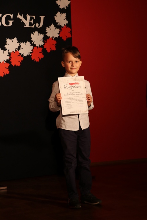 Laureatom wręczono dyplomy oraz upominki. Podczas przeglądu patriotyczny program zaprezentowali uczniowie ze Szkoły Podstawowej w Dalekiem pod kierunkiem Iwony Hawryluk-Wdowiak i Katarzyny Stysiak.