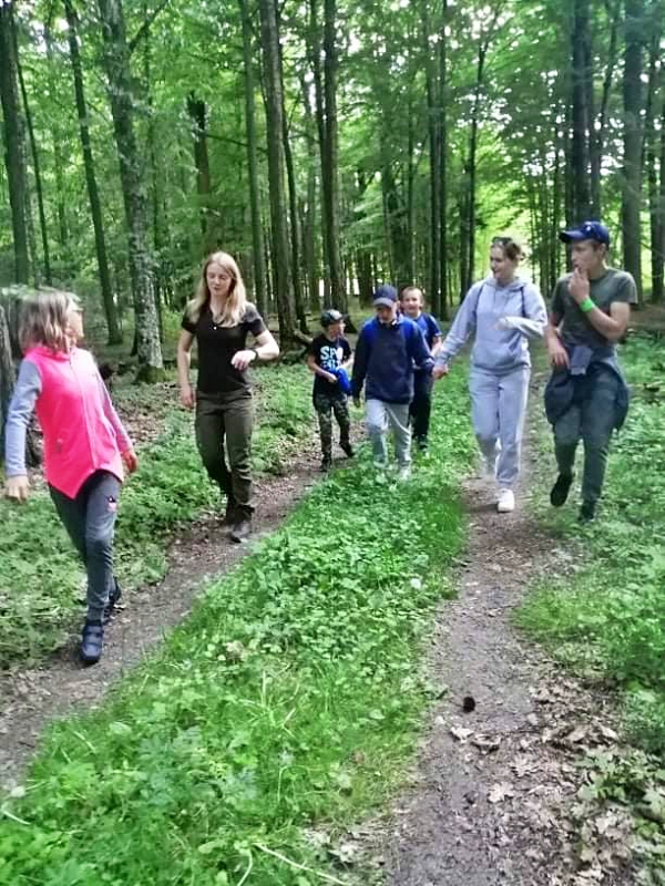 Młodzież była wciąż chłonna przygód, dlatego spotkała się z ks. Tomaszem Duszkiewiczem oraz prezesem i członkami Ekologicznego Forum Młodzieży: Marceliną, Hubertem, Arturem i Wojciechem. Dzięki interesującej rozmowie uczniowie dowiedzieli się, że w ekologii najważniejszy jest człowiek. Las i dzikie zwierzęta bez pomocy człowieka nie są w stanie przetrwać w dzisiejszych czasach. Później podzieleni na grupy pomaszerowali na surwiwalową wędrówkę do lasu. Po tak obfitym dniu mieli jeszcze siłę na wspólne tańce, gry i zabawy przy ognisku.