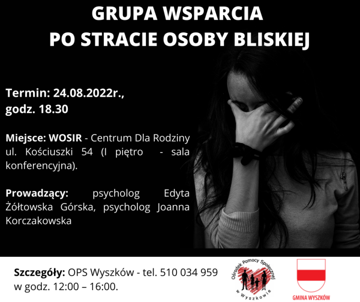 (Zam: 18.08.2022 r., godz. 11.34)Spotkania dla osób po stracie osoby bliskiej odbywają się w Centrum dla Rodziny (budynek WOSiR). Najbliższe 24 sierpnia.