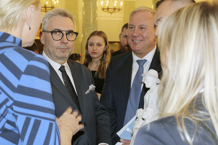 Podejrzliwość Marka Głowackiego [...kto tę rozgrywkę pilotuje w kancelarii prezydenta...] można skojarzyć z dociekaniem sprawcy podsłuchów u Sowy&Przyjaciół zamiast poznanych dzięki nim treści. I chyba jest tu coś na rzeczy bo skąd burmistrz mógł wiedzieć, jaki krawat ma włożyć? Dobrany jest rewelacyjnie! Pomijając meritum, powyższe zdjęcia dostarczają wrażeń estetycznych. Niebieskość połączona z bielą jest trendy.