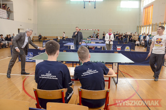 Gości wydarzenia witali przedstawiciele organizatorów – sekretarz powiatu Jerzy Ausfeld, dyrektor POKiS Maria Gajewska, dyrektor I LO Dorota Piotrowicz oraz kierownik WTZ Marek Rosłoniec. Inauguracyjny mecz towarzyski rozegrał z jednym z zawodników sekretarz powiatu Jerzy Ausfeld.