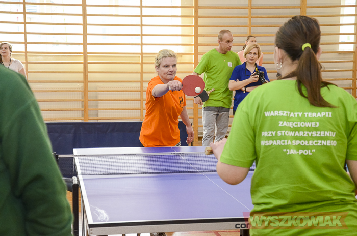 (Zam: 05.04.2018 r., godz. 12.30)Doroczne wydarzenie zorganizowali: działające w ramach koła Polskiego Stowarzyszenia na Rzecz Osób z Upośledzeniem Umysłowym Warsztaty Terapii Zajęciowej w Wyszkowie, Powiatowy Ośrodek Sportu i Rekreacji oraz I Liceum Ogólnokształcące. W turnieju uczestniczyli podopieczni Środowiskowego Domu Samopomocy „Soteria” w Wyszkowie, Domu Pomocy Społecznej dla Dzieci w Niegowie, Warsztatów Terapii Zajęciowej Stare Pieścirogi, Ośrodka Szkolno-Wychowawczego w Wyszkowie, Środowiskowego Domu Samopomocy w Pułtusku, Zespołu Szkół Specjalnych w Brańszczyku, Środowiskowego Domu Samopomocy typu A i B w Ostrowi Mazowieckiej, Powiatowego Środowiskowego Domu Samopomocy „Drogowskaz” w Wyszkowie, Warsztatów Terapii Zajęciowej w Wyszkowie, Domu Pomocy Społecznej w Brańszczyku. Sędzią głównym rozgrywek był nauczyciel I LO Michał Czajka. Funkcje sędziowskie przy stołach pełnili też uczniowie I LO w Wyszkowie.