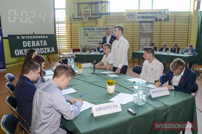 Środowej dyskusji, zgodnie z założeniami debat oksfordzkich, przewodniczyli marszałek prowadzący dyskusję i wspierający go sekretarz. W tej roli wystąpili wicestarosta Adam Mróz i współzałożycielka Wyszkowskiego Centrum Rozwoju Biznesu Ewa Trzcińska. W gronie jury zasiedli: zastępca burmistrza Aneta Kowalewska, lider ds. komunikacji wewnętrznej i budowania marki pracodawcy w Quad Graphics Joanna Krzyżaniak, naczelnik wydziału edukacji Starostwa Powiatowego Krzysztof Arbaszewski oraz Urszula Zadworna z Poradni Psychologiczno-Pedagogicznej w Wyszkowie.