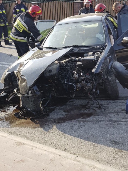 Kilka minut przed godz.17.00 w Rybnie kierowca seata podczas wyprzedzania stracił panowanie nad pojazdem i uderzył w ogrodzenie posesji. Uderzenie było tak mocne, że od pojazdu oderwało się koło, które uderzyło w jadącego motocyklistę. W wypadku poszkodowane zostały trzy osoby – kierowca i pasażer seata oraz motocyklista.