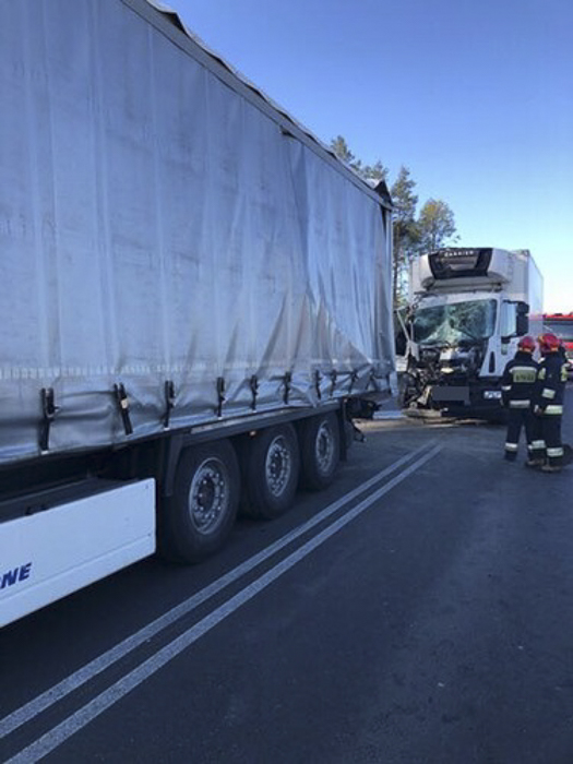 (Zam: 27.04.2018 r., godz. 09.28)Na przebudowywanym odcinku drogi krajowej nr 8 w Knurowcu ok. godz. 6.30 zderzyły się trzy ciężarówki. Policjanci w wydziału ruchu drogowego pracujący na miejscu zdarzenia ustalili, że kierowca iveco nie zachował bezpiecznej odległości między pojazdami i uderzył w tył dafa, który z kolei uderzył w tył mana. Nikt z kierujących nie odniósł obrażeń. Droga była całkowicie zablokowana, usuwanie skutków kolizji trwało kilka godzin. Policjanci wyznaczyli objazdy.