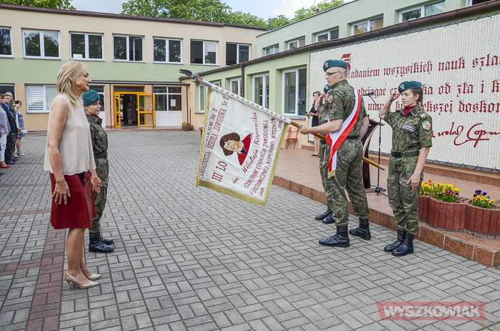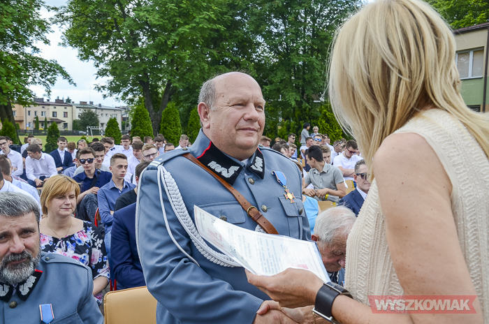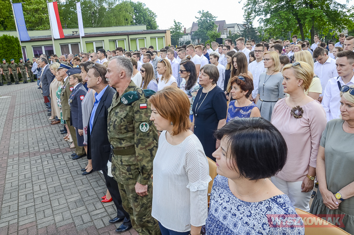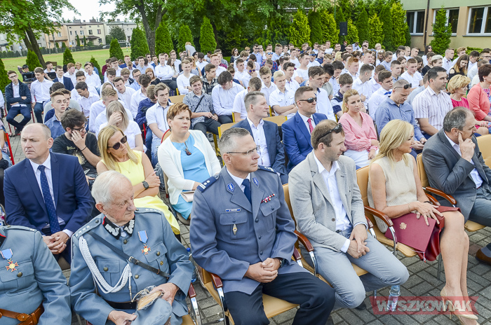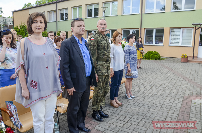 W piątkowej uroczystości wzięli udział przedstawiciele władz powiatu, instytucji, organizacji, Rady Rodziców oraz uczniowie. W jej trakcie działająca w szkole kapituła wręczyła doroczną statuetkę „Serce za Serce” przyznawaną osobom, które zasłużyły się na rzecz szkoły. W tym roku otrzymał ją starosta Bogdan Pągowski. Podniosłą chwilą było też mianowanie nauczyciela kaprala rezerwy Andrzeja Grajczyka na stopień sierżanta rezerwy zgodnie z decyzją komendanta Wojskowej Komendy Uzupełnień ppłk Leszka Wieczorka. W ten sposób został wyróżniony za szczególne zasługi na rzecz suwerenności i demokracji Rzeczypospolitej.