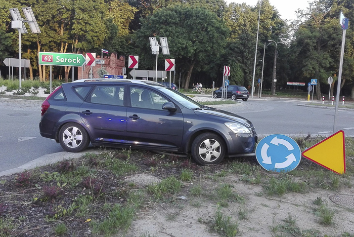 (Zam: 29.05.2018 r., godz. 18.17)Do zdarzenia doszło w niedzielę 27 maja około godziny 19.50 na rondzie im. ks. Stanisława Szulca w Wyszkowie. Policjanci na ul. Kościuszki zauważyli kierowcę osobówki, który jechał zygzakiem ledwie trafiając w swój pas ruchu. Gdy podróżujący kią cee’d zatrzymał się na rondzie, mundurowi wybiegli ze swojego samochodu, by uniemożliwić mu dalszą jazdę nietrzeźwemu. Mężczyzna chciał uciec. Swoją podróż szybko zakończył tracąc panowanie nad pojazdem i uderzając w znak drogowy. Funkcjonariusze dobiegli do samochodu, sprawdzili czy kierowca nie potrzebuje pomocy medycznej i zabrali mu kluczyki. Wezwany na miejsce patrol policji potwierdził przypuszczenia młodych policjantów – 47-latek był kompletnie pijany. Kierowca stracił prawo jazdy, a za swoje postępowanie odpowie przed sądem. Za jazdę w stanie nietrzeźwości grozi do lat 2 więzienia.