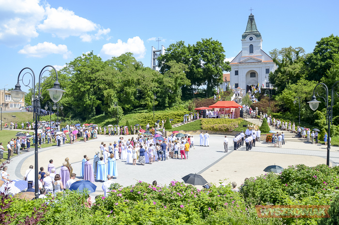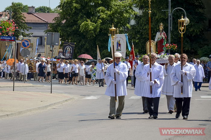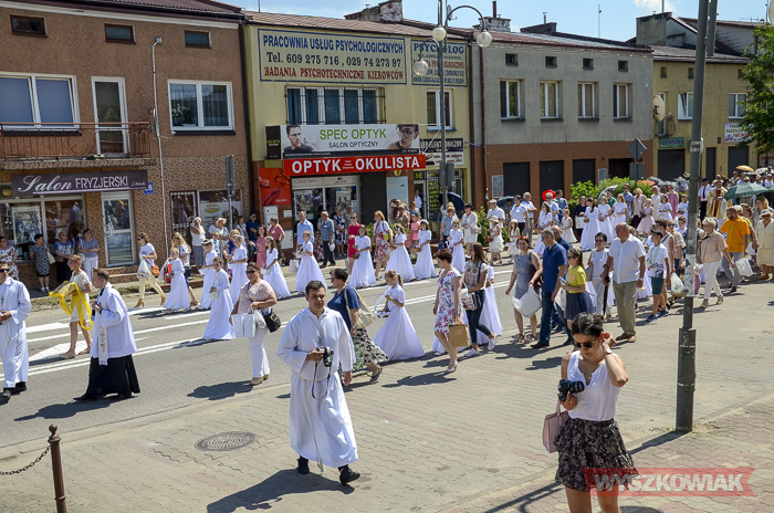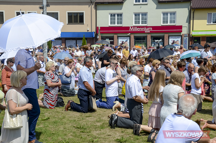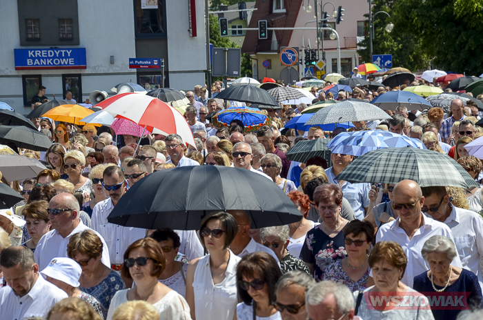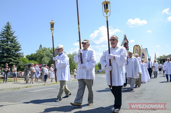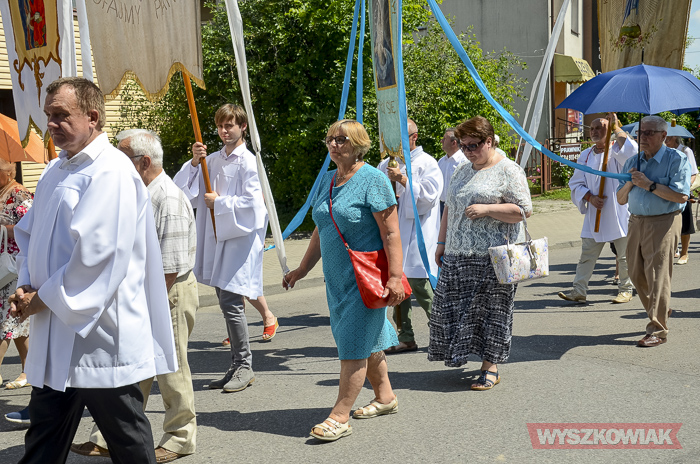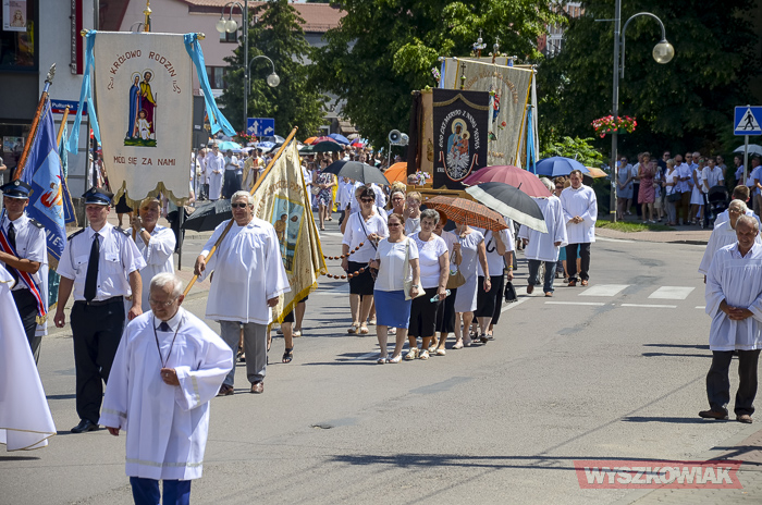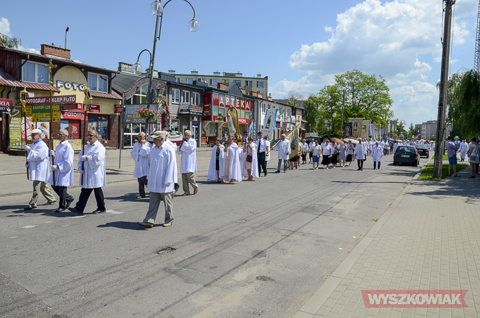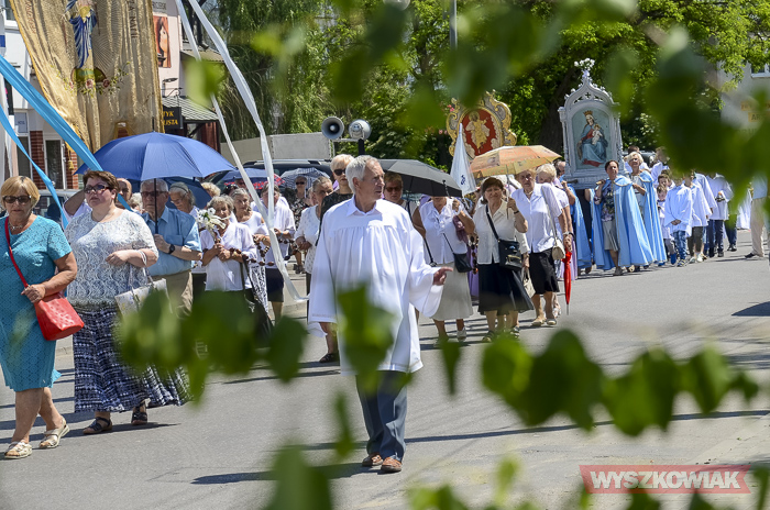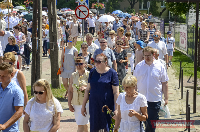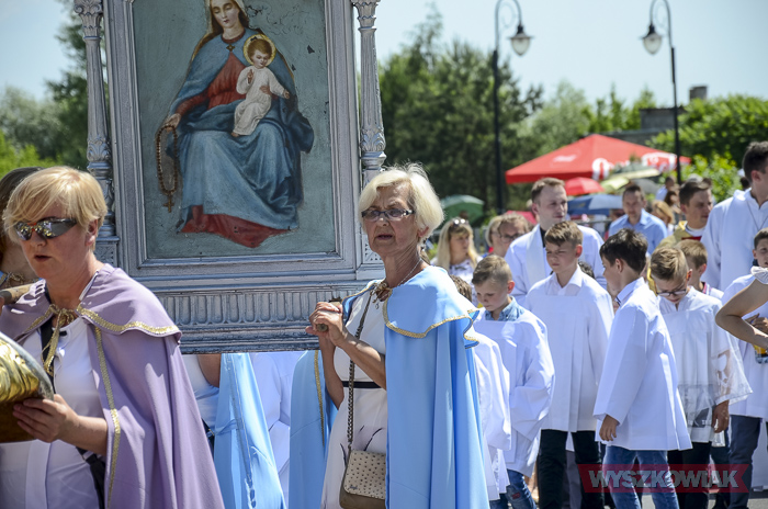 (Zam: 31.05.2018 r., godz. 15.03)Wierni szli z sanktuarium do kościoła parafii św. Wojciecha ulicami Daszyńskiego, Pułtuską, Sowińskiego.