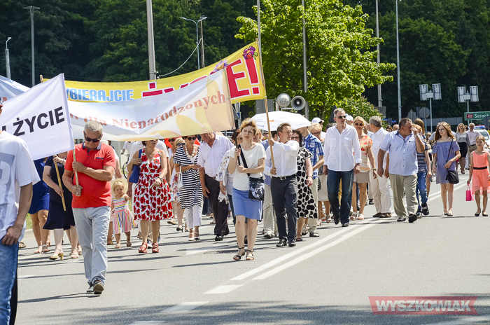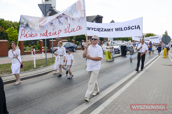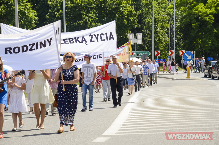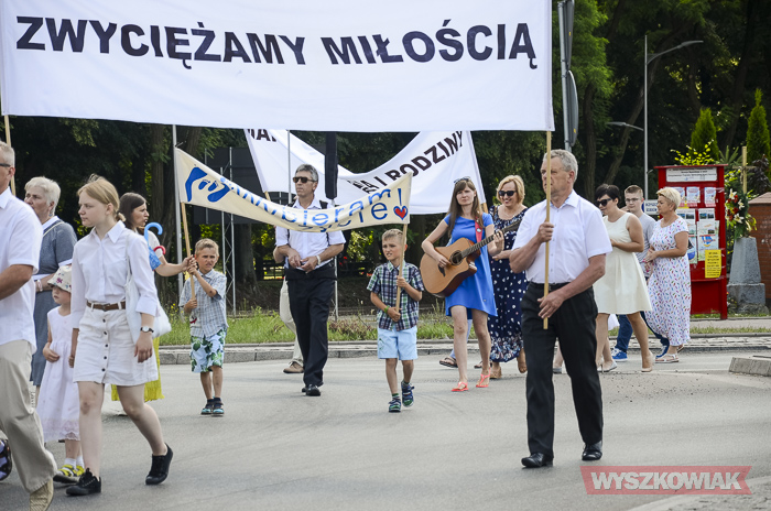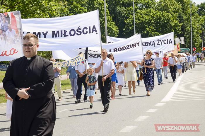 Na czele niedzielnego marszu szli wyszkowscy księża. Uczestnicy szli z transparentami m.in. „Polska rodziną silna”, „Zwyciężamy miłością”, „Marsz dla życia i rodziny”, „Wszystko, co uczyniliście jednemu z tych braci moich najmniejszych, Mieście uczynili (Mt 25,40), „Miłość rodzi życie”, „Rodzina kolebką życia”. Zatrzymali się na placu Miejskim, gdzie chętni mogli zostać, by zobaczyć widowisko historyczne organizowane przez gminę Wyszków.