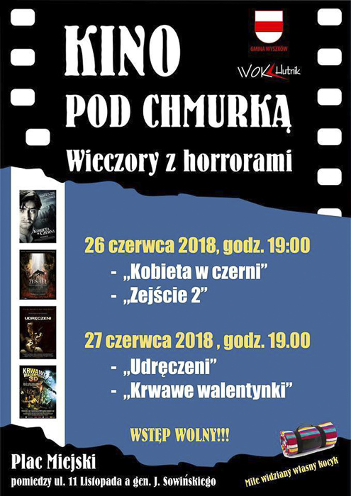 (Zam: 22.06.2018 r., godz. 18.05)26 czerwca o godz. 19.00 wyświetlona zostanie „Kobieta w czerni” Jamesa Watkinsa (produkcja kanadyjsko-szwedzko-brytyjska, polska premiera 2012 r.). Tego samego wieczoru będzie można zobaczyć brytyjski film „Zejście 2” w reżyserii Jona Harrisa, który miał swoją polską premierę w 2010 r.