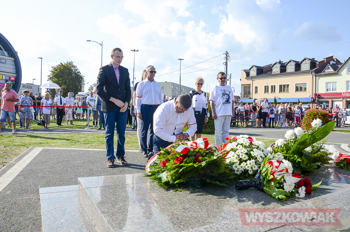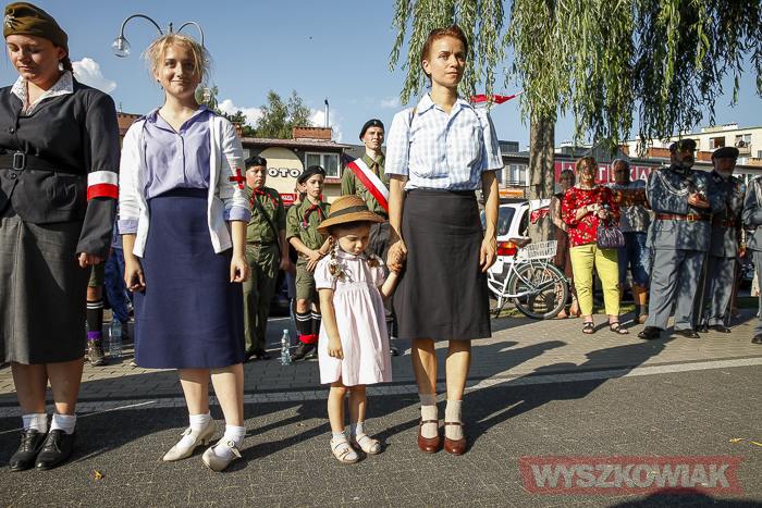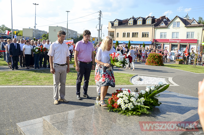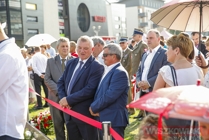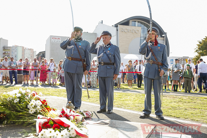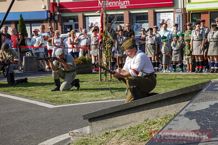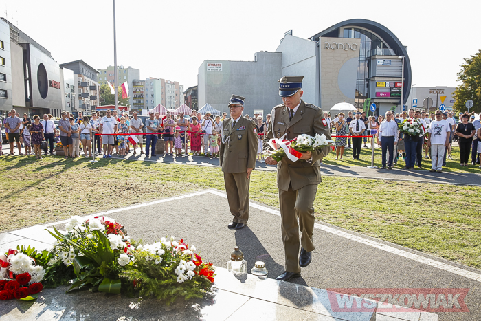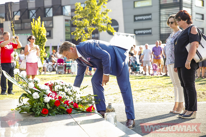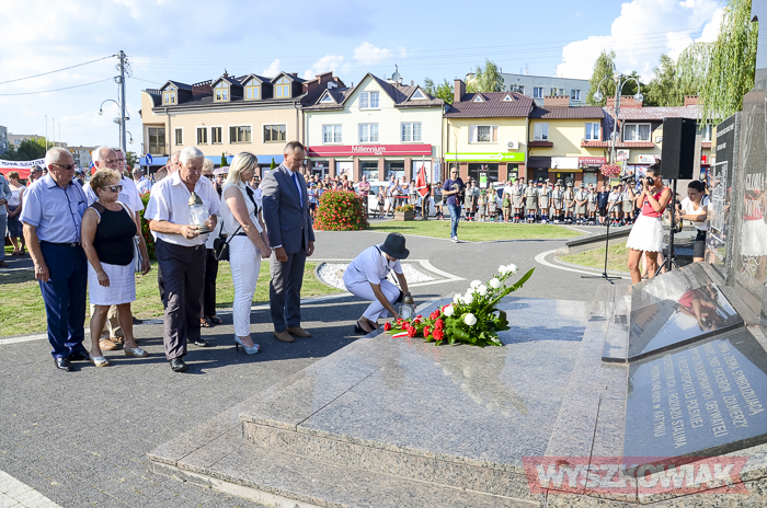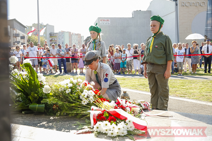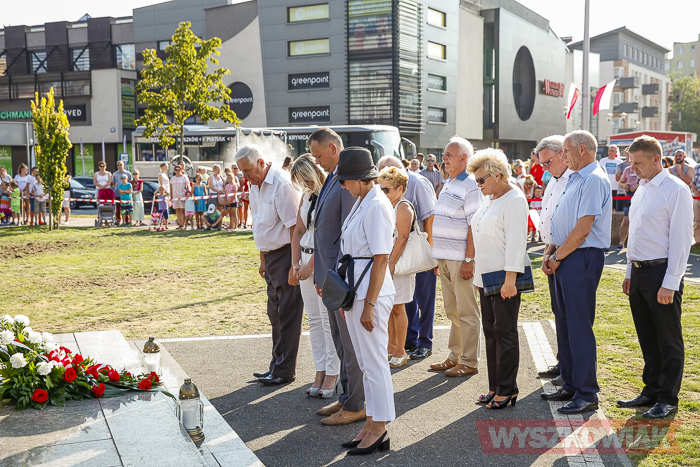 (Zam: 02.08.2018 r., godz. 09.05)Uroczystości zorganizowane przez Urząd Miejski odbyły się w centrum miasta, u zbiegu ulic Sowińskiego i Pułtuskiej. W Godzinę „W” kierowcy zatrzymali się na ulicach, piesi przystanęli albo wyszli ze sklepów, by w ciszy pomyśleć o tych, którzy 1 sierpnia 1944 r. postanowili niezłomnie walczyć gotowi zapłacić za wolność własnym życiem. Kibice Bugu Wyszków wyszli na rondo odpalając race. Jak co roku mieli ze sobą duży transparent w barwach narodowych z symboliką państwową i klubową z napisem „Jeszcze Polska nie zginęła, kiedy my żyjemy…”. Zza pomnika Gloria Victis wypuszczono 70 białych gołębi. Wybrzmiał hymn. Zebrani na placu podchodzili kolejno pod pomnik, by złożyć wieńce, kwiaty. Wśród delegacji byli przedstawiciele władz samorządowych gminy i powiatu, partii politycznych, stowarzyszeń, instytucji. W ten sposób hołd powstańcom oddali też niereprezentujący żadnych organizacji mieszkańcy, z których wielu przyszło na uroczystość z flagami, czy zakładając koszulki z symboliką patriotyczną. Scenariusz spotkania nie przewidywał przemówień. Słowny montaż zaprezentowała za to młodzież z Teatru Farsa oraz Młodzieżowej Rady Miejskiej – Zuzanna Deluga, Maksymilian Martyna, Adrian Białobrzeski. Swój wiersz zaprezentował też wyszkowianin od lat piszący utwory Mieczysław Joniuk. Zgromadzeni obejrzeli krótką rekonstrukcję historyczną w wykonaniu Stowarzyszenia Historyczno-Edukacyjnego 7 Pułku Lansjerów Nadwiślańskich z Halinowa i Grupy Wolf z Warszawy.