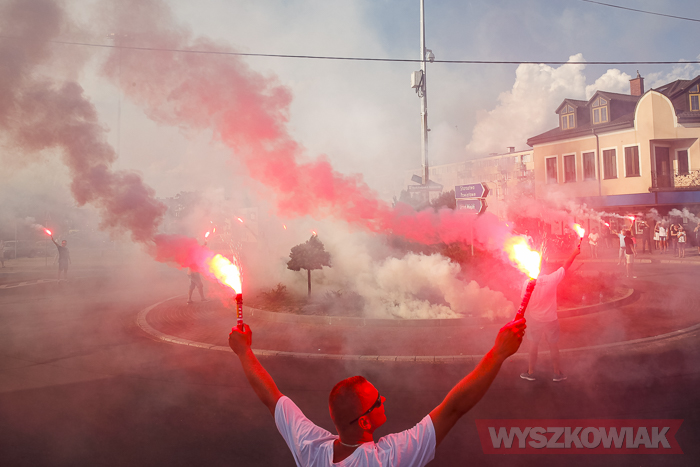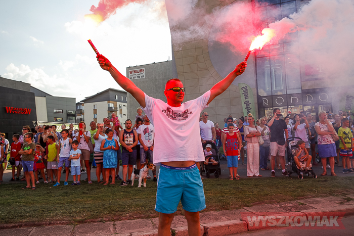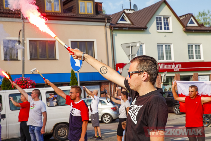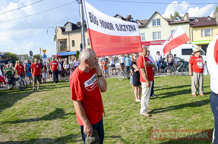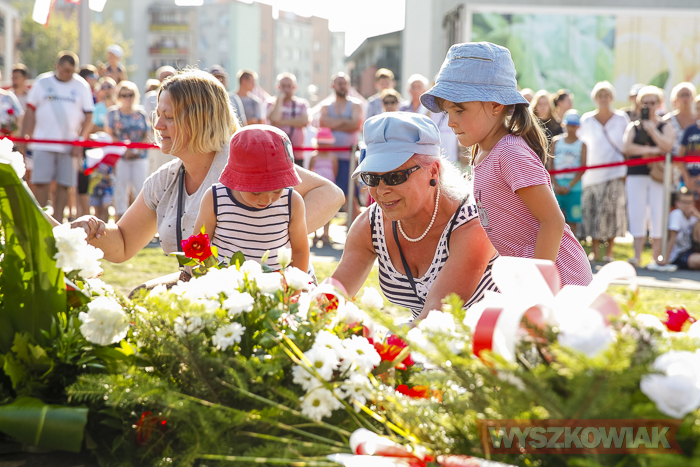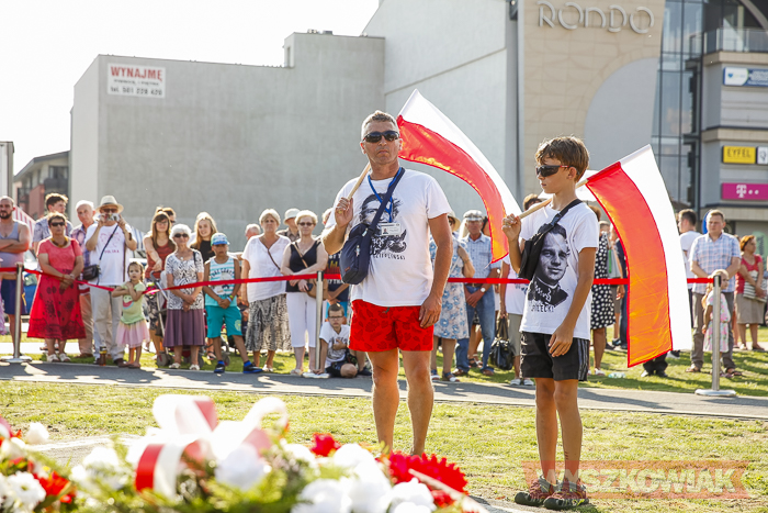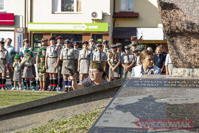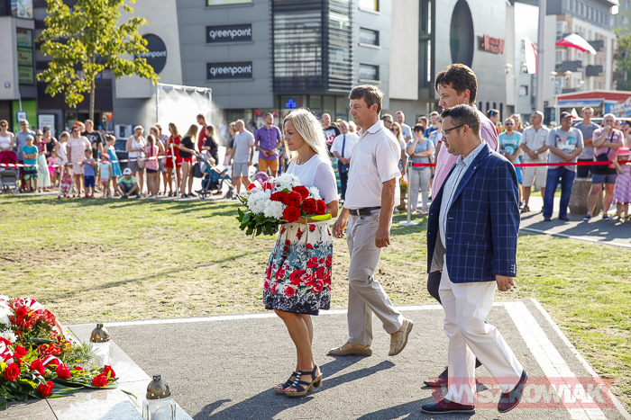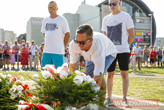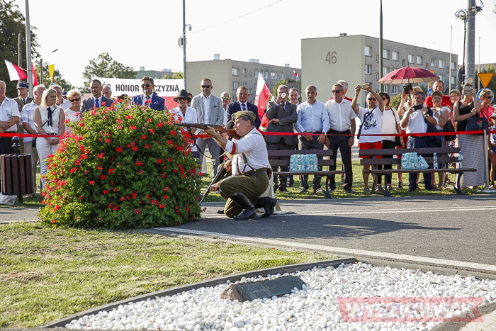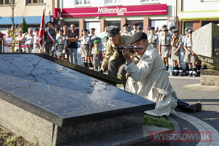 (Zam: 02.08.2018 r., godz. 09.05)Uroczystości zorganizowane przez Urząd Miejski odbyły się w centrum miasta, u zbiegu ulic Sowińskiego i Pułtuskiej. W Godzinę „W” kierowcy zatrzymali się na ulicach, piesi przystanęli albo wyszli ze sklepów, by w ciszy pomyśleć o tych, którzy 1 sierpnia 1944 r. postanowili niezłomnie walczyć gotowi zapłacić za wolność własnym życiem. Kibice Bugu Wyszków wyszli na rondo odpalając race. Jak co roku mieli ze sobą duży transparent w barwach narodowych z symboliką państwową i klubową z napisem „Jeszcze Polska nie zginęła, kiedy my żyjemy…”. Zza pomnika Gloria Victis wypuszczono 70 białych gołębi. Wybrzmiał hymn. Zebrani na placu podchodzili kolejno pod pomnik, by złożyć wieńce, kwiaty. Wśród delegacji byli przedstawiciele władz samorządowych gminy i powiatu, partii politycznych, stowarzyszeń, instytucji. W ten sposób hołd powstańcom oddali też niereprezentujący żadnych organizacji mieszkańcy, z których wielu przyszło na uroczystość z flagami, czy zakładając koszulki z symboliką patriotyczną. Scenariusz spotkania nie przewidywał przemówień. Słowny montaż zaprezentowała za to młodzież z Teatru Farsa oraz Młodzieżowej Rady Miejskiej – Zuzanna Deluga, Maksymilian Martyna, Adrian Białobrzeski. Swój wiersz zaprezentował też wyszkowianin od lat piszący utwory Mieczysław Joniuk. Zgromadzeni obejrzeli krótką rekonstrukcję historyczną w wykonaniu Stowarzyszenia Historyczno-Edukacyjnego 7 Pułku Lansjerów Nadwiślańskich z Halinowa i Grupy Wolf z Warszawy.