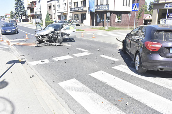 (Zam: 09.08.2018 r., godz. 11.51)Jak wynika z pierwszych informacji zebranych przez Policję, 30-letnia kobieta kierująca nissanem jadąca ul. Świętojańską podczas skręcania w ul. Kowalskiego nie ustąpiła pierwszeństwa przejazdu i doprowadziła do zderzenia z 28-letnim kierowcą mercedesa. Kierowcy obu aut zostali przetransportowani do szpitala.