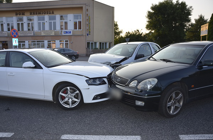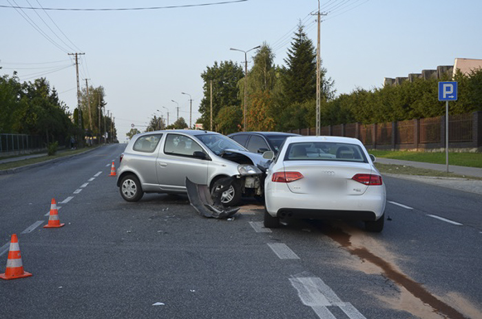 (Zam: 30.08.2018 r., godz. 12.14)Policjanci pracujący na miejscu zdarzenia wstępnie ustalili, że 80-latek kierujący toyotą wyjeżdżając z ul. Nadgórze nie ustąpił pierwszeństwa przejazdu prawidłowo jadącemu ul. Białostocką osobowemu lexusowi. Obydwa pojazdy uderzyły w stojące na przeciwległym pasie ruchu audi, którego kierujący czekał na możliwość skrętu w ul. Nadgórze. Z obrażeniami ciała do szpitala została przewieziona 78-letnia mieszkanka powiatu wyszkowskiego, pasażerka toyoty.