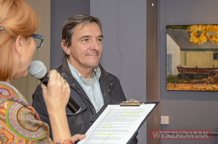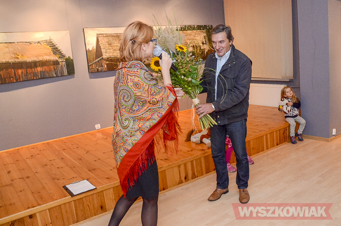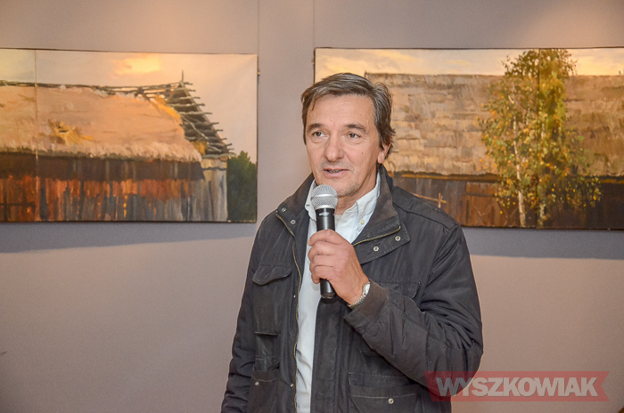 (Zam: 25.10.2018 r., godz. 15.30)- Malarze właściwie nie powinni mówić, bo obrazy to ich język - podkreślił witając gości podczas czwartkowego wernisażu. - Takie stodoły, choć już coraz rzadziej, można spotkać podczas malarskich plenerów. Zdałem sobie sprawę, że to ginące piękno. Kiedyś, kiedy otrzymywałem nagrodę za obraz pan z radia powiedział, że te stodoły to są świątynie chleba. Bardzo spodobało mi się to określenie - zaznaczył. - Obrazy wyglądają na bardzo realistyczne, ale to już moja skłonność - jestem zachwycony światem dookoła, jak mój profesor. Każdy artysta myśli jednak o tym, by nadać tematowi własne piętno. Moje polega na tym, że maluję stodoły jakich do tej pory nigdy w malarstwie nie widziałem. Przypadkiem wpadłem na pomysł, że stodoła może być niemalże tramwajem - mówił o podłużnym kształcie obrazów.