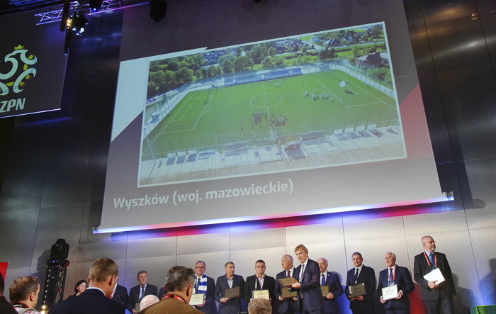 (Zam: 29.10.2018 r., godz. 09.08)W środę 25 października w Kielcach ponad 400 przedstawicieli świata sportu, klubów piłkarskich i instytucji odpowiedzialnych za zabezpieczanie imprez sportowych miało okazję wysłuchać prelekcji, paneli dyskusyjnych, podpatrzeć projekty okołostadionowe. Zwieńczeniem jednodniowego wydarzenia była uroczysta gala, podczas której Zbigniew Boniek wręczył wyróżnienie naczelnikowi Leszkowi Marszałowi. Nagroda to wyraz uznania dla samorządu za budowę boiska bocznego na wysokim poziomie. To też nagroda dla wyszkowskich działaczy zrzeszonych w klubach sportowych. Budowa boiska do piłki nożnej i futbolu amerykańskiego z trybuną i infrastrukturą techniczną kosztowała blisko 6 mln złotych. Gmina zrealizowała inwestycję w całości z własnego budżetu.