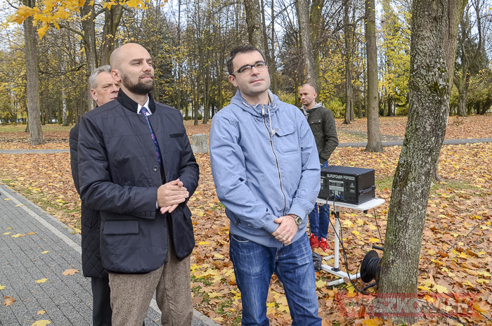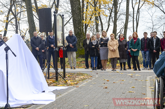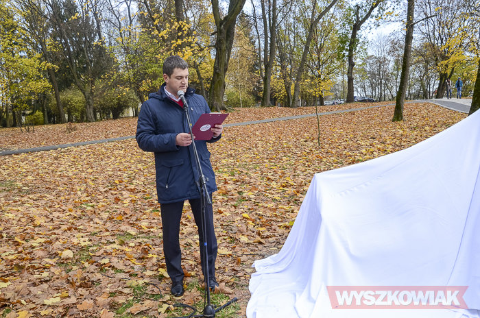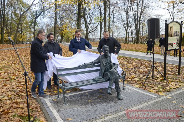 Pomnik odsłonili burmistrz Grzegorz Nowosielski, przedstawiciel Wyszkowskiej Rodziny Enigmy wicestarosta Adam Mróz, Karol Badyna oraz przedstawiciel uczniów I LO.