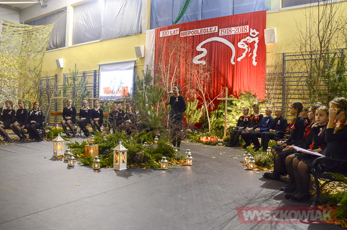 Wieczór patriotyczny „100 lat Niepodległej 1918-2018” to przede wszystkim przypomnienie dziejów Polaków, którzy walczyli o odzyskanie niepodległości. Uczniowie przypomnieli szereg patriotycznych utworów takich jak „Rota”, „Warszawskie dzieci”, „Warszawianka”. Były też bardziej współczesne utwory jak „Wszystko ma swój czas” Perfektu, czy „Biały krzyż” Czerwonych Gitar.