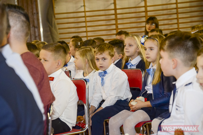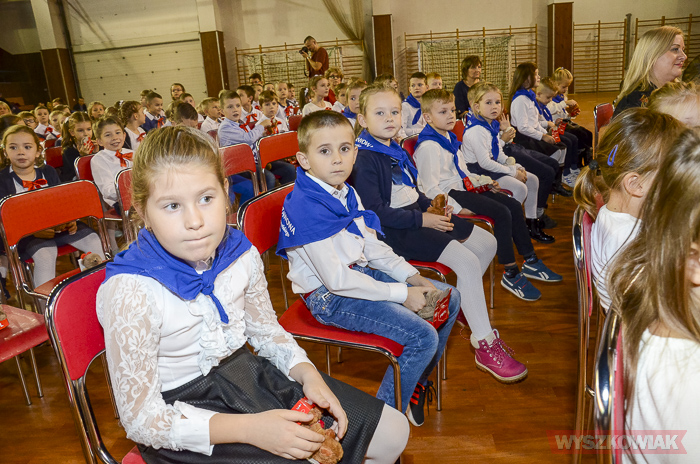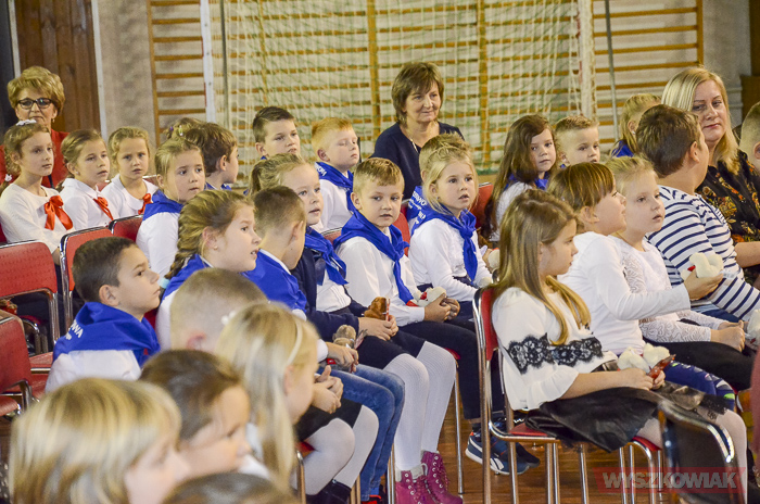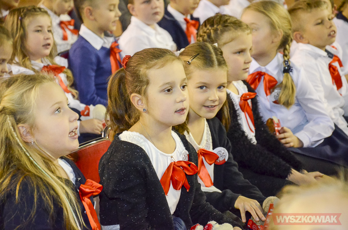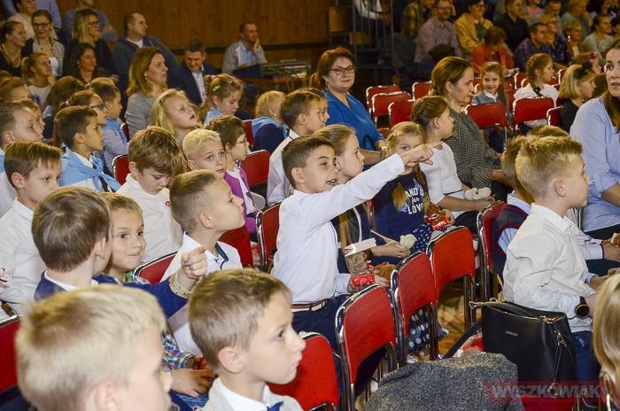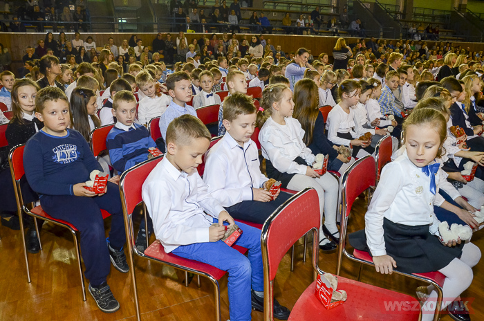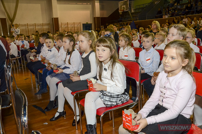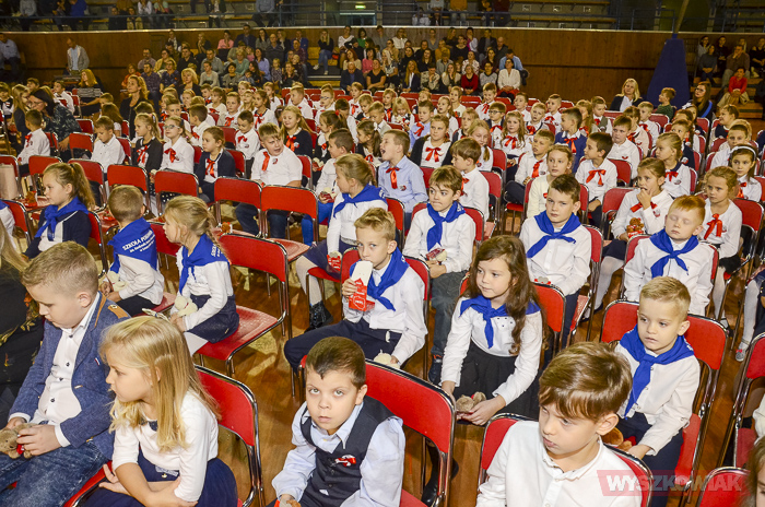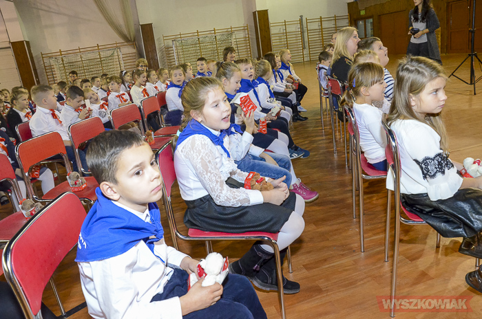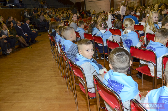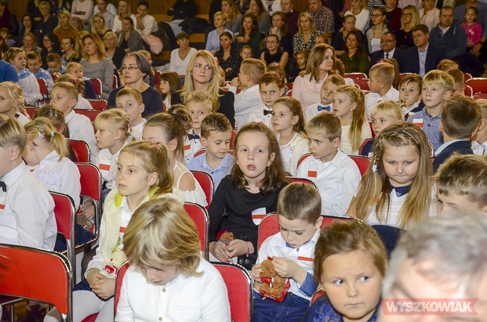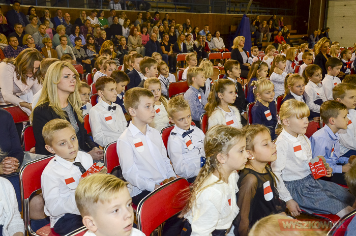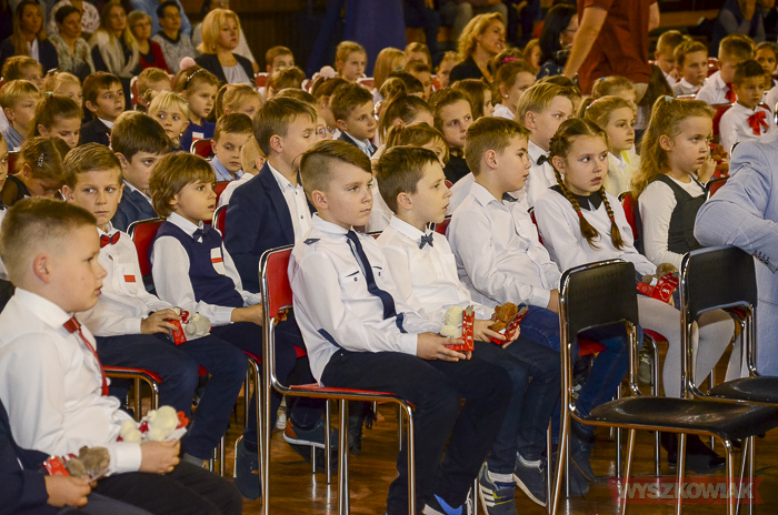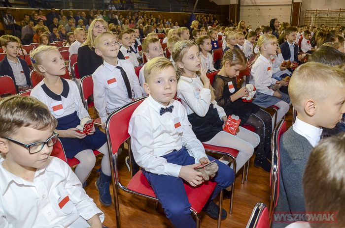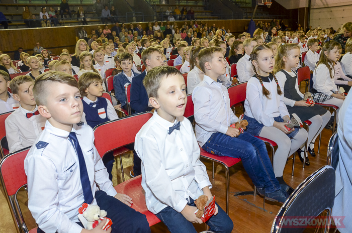 (Zam: 16.11.2018 r., godz. 12.12)Powitanie Wyszkowskiego Pierwszaka to spotkanie, które co roku organizuje gmina Wyszków z okazji Narodowego Święta Niepodległości. Ma być to pierwsze tak poważne zetknięcie się młodych mieszkańców gminy z tematyką samorządową. Dzieci w trakcie uroczystości poznają symbole małej ojczyzny i uczą się wartości, jaką jest lokalna wspólnota. W tym roku w hali sportowej Wyszkowskiego Ośrodka Sportu i Rekreacji pierwszoklasistów witały zastępca burmistrza Aneta Kowalewska i przewodnicząca Rady Miejskiej Elżbieta Piórkowska. Towarzyszyli im też inni radni miejscy, od których uczniowie otrzymali ufundowane przez gminę legitymacje, będące symbolem wstąpienia do samorządowej wspólnoty.