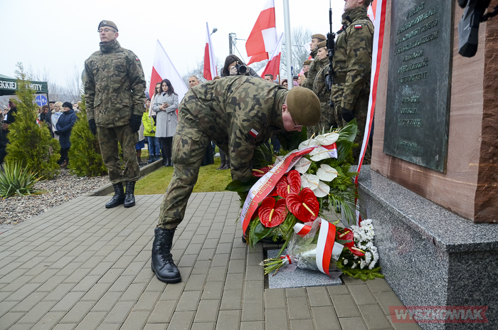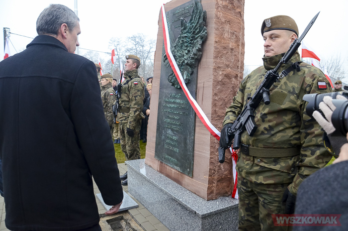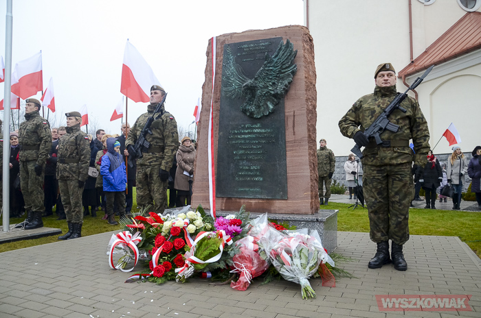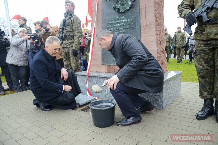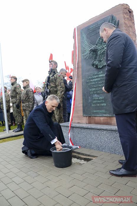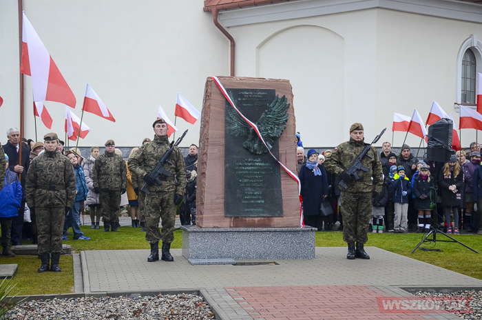 Pomnik odsłonił żołnierz podziemia antykomunistycznego, członek oddziału Jana Kmiołka kpt. Marian Czajkowski. Kapsułę czasu pod pomnikiem wmurowali ks. Kazimierz Wądołowski i burmistrz Grzegorz Nowosielski. Znalazły się niej m.in. ziemia z kwatery „Ł” Cmentarza Powązkowskiego, kopia dokumentu patronatu narodowego prezydenta nad uroczystością, akt erekcyjny odsłonięcia pomnika, bieżące wydania gazet, w tym tygodnika „Wyszkowiak”, aktualnie bite monety, zdjęcia Sanktuarium Św. Rodziny, tegoroczny kalendarz.