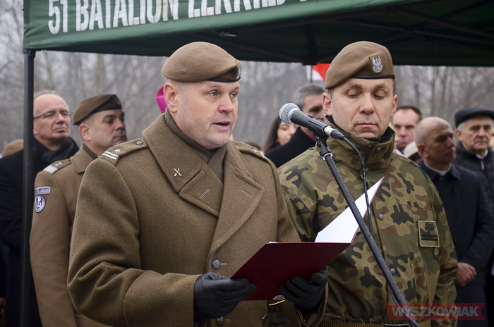 - Moi dzielni żołnierze, wspaniali mieszkańcy Wyszkowa, przybyłem dziś tutaj jako generał, jako żołnierz, jako Polak z trzech powodów - podkreślił gen. dyw. Wiesław Kukuła. - Po pierwsze jestem tu, aby swoją obecnością oddać hołd poległym Żołnierzom Wyklętym. Po drugie, by jako generał, żołnierz Wojska Polskiego okazać gest solidarności z wami, z waszą wspaniałą postawą i być obecnym tu pośród was. Przybyłem też po to, by dać żywe świadectwo tego, że wartości Żołnierzy Wyklętych są obecne pośród nas, żołnierzy Wojska Polskiego. Jestem po to, by złożyć wobec państwa zobowiązanie, że dopóki my będziemy w służbie, to się nie zmieni, takie będzie Wojsko Polskie.