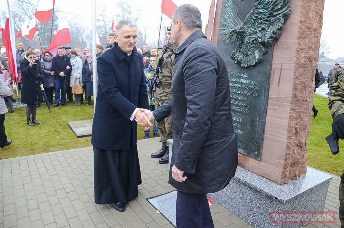 - Poświęcamy ten pomnik żołnierzom walczącym o naszą niepodległość, a w sposób szczególny tym, których nazwano wyklętymi, a którzy okazali się niezłomnymi synami ojczyzny i wychowawcami następnych pokoleń Polaków - podkreślił ks. bp. Stanisław Stefanek, który poświęcił monument. - Chcemy przez ten pomnik przypomnieć zasługi naszych zmarłych ojców, dziadków, którzy z bronią w ręku szli bronić całej naszej ojczyzny. Niech przykład ich życia zachęci nas do lepszego oddawania czci Panu Bogu i bardziej sumiennego wypełniania naszych obowiązków względem Boga, Kościoła, ojczyzny i wobec każdego człowieka, którego spotkamy na naszej drodze powołania, w naszej zawodowej służbie społeczeństwu.