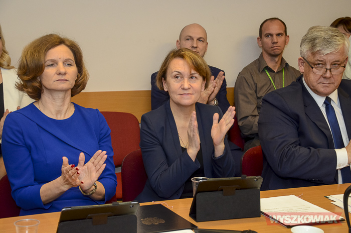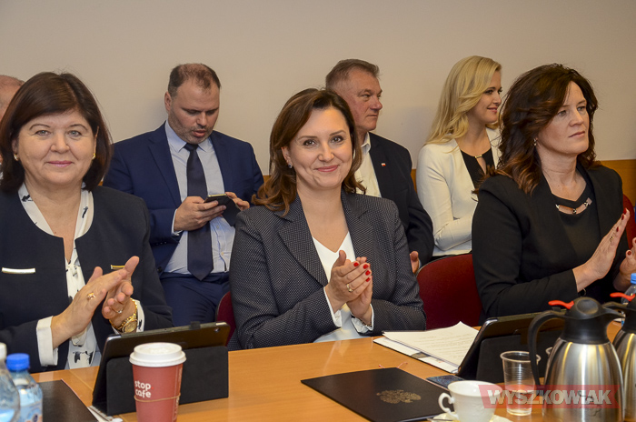 Obrady rozpoczęły się od wręczenia zaświadczeń o wyborze i złożenia ślubowania przez radnych. Obserwowała je liczna grupa przedstawicieli powiatowych jednostek organizacyjnych, urzędników, reprezentanci komitetów wyborczych, które funkcjonowały w minionej kampanii samorządowej. Była też Aneta Kowalewska (Wspólnota Samorządowa Wyszków), która obejmując funkcję zastępcy burmistrza Wyszkowa na kolejną kadencję, zrzekła się mandatu radnej powiatowej. Zastąpi ją, również obecny w sali konferencyjnej, Piotr Wykowski (jeszcze nie złożył ślubowania).