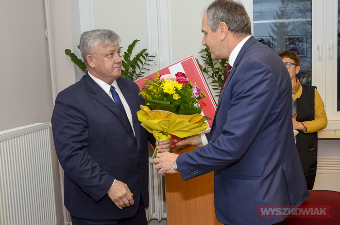Podczas sesji starosta Jerzy Żukowski, przewodniczący Waldemar Sobczak wręczyli kwiaty i dziękowali za dotychczasową pracę odchodzącym ze swoich funkcji Bogdanowi Pągowskiemu i Adamowi Mrozowi.