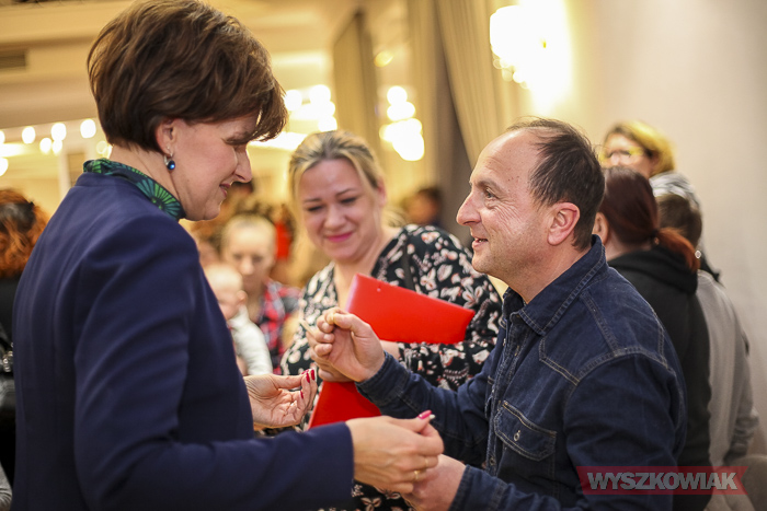 (Zam: 11.12.2018 r., godz. 17.14)Danuta i Krzysztof Kowalewscy wraz z Ośrodkiem Pomocy Społecznej co roku organizują tego typu uroczystości (do tej pory odbyło się kilkanaście). Spotkanie, które odbyło się 11 grudnia uświetnił swoim występem zespół Gloriosa Trinita. W podziękowaniu od OPS i rodzin Danuta Kowalewska otrzymała choinkę i gwiazdę betlejemską. Trudno jednak przełożyć na materialny wymiar wspólne spotkanie obfitujące w życzliwość. Prócz rodzin wzięli w nim udział dyrektor OPS-u Agnieszka Mróz, sekretarz gminy Anna Gołębiewska, księża z Rybienka Leśnego proboszcz Jarosław Balikowski i Zenon Mosakowski, Wojciech Bielecki z Fundacji Lepszy Los, która przygotowała paczki dla uczestników, pracownicy OPS-u zaangażowani w przygotowanie uroczystości.