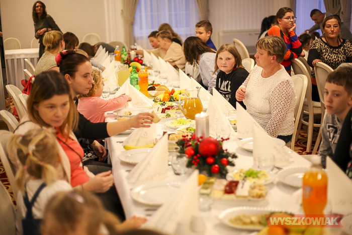 Także inni uczestnicy uroczystości kierowali do gości życzenia. Okazją do ich wypowiedzenia było też dzielenie się opłatkiem. Potem zgromadzeni zasieli do kolacji. Sponsorami upominków świątecznych byli Przedsiębiorstwo Wodociągów i Kanalizacji oraz Pomelac.