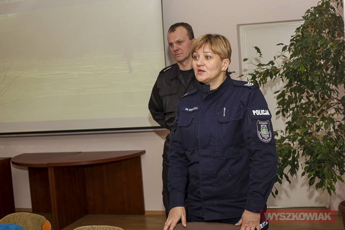 - Reagujcie, wychłodzenie dotyka nie osób, które wpadły do wody. Ktoś może leżeć na chodniku, przy ławce i nieważne, czy jest pod wpływem alkoholu czy nie, każdego trzeba ratować - dodała sierż. szt. Marta Gierlicka, która wraz z podkom. Damianem Wroczyńskim z Komedy Powiatowej Policji przeprowadziła krótką lekcję dotyczącą bezpieczeństwa.