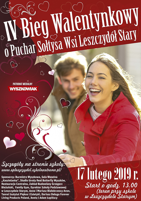 Bieg odbywa się z okazji walentynek, dlatego specjalnie z myślą o parach odbędzie się bieg na dystansie 600 metrów na boisku szkolnym. Poza tym w programie imprezy jest bieg główny (2,5 km i ok. 5 km) odbywający się drogami polnymi (start z boiska szkolnego) oraz bieg dla uczniów kl. VI-VIII (1 km na boisku szkolnym).