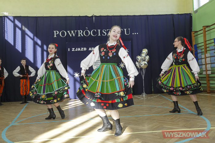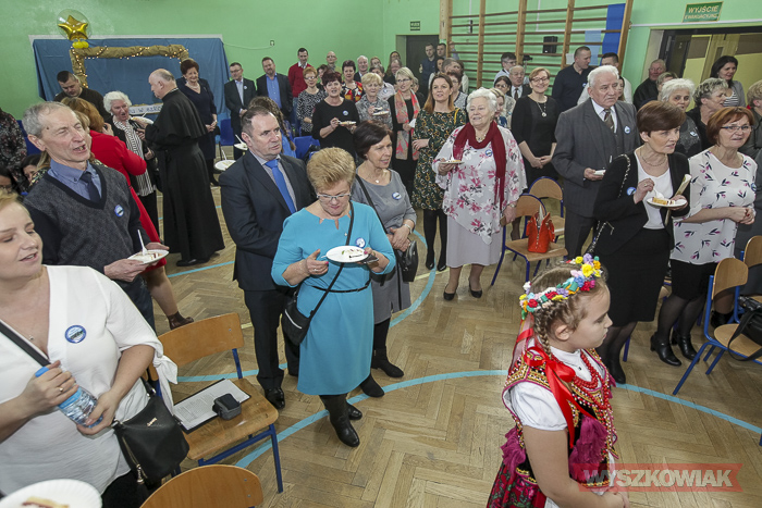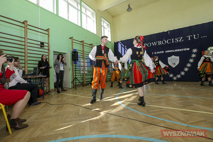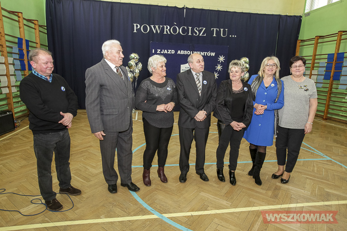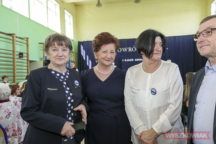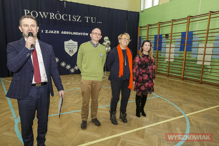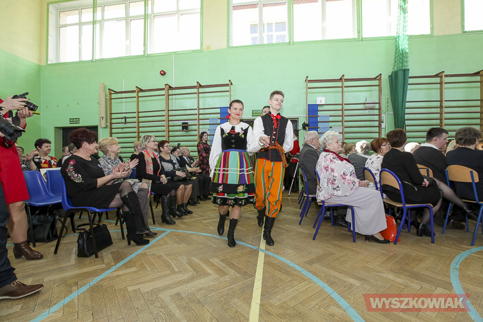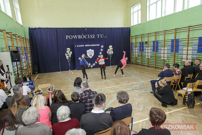 - Już samo przygotowywanie tej uroczystości było dla nas lekcją historii, wychowania, patriotyzmu lokalnego. Ja osobiście odbyłem w ramach przygotowań lekcje tańca - stwierdził dyrektor Krzysztof Ochmański. - Nasz zjazd to spotkanie co najmniej trzech pokoleń - dzieci, rodziców, dziadków. Są też wnuczkowie. To długo oczekiwane spotkanie. Dziękuję, że udało się je zorganizować. Zarejestrowaliśmy absolwentów ze szkoły, która mieściła się w budynkach mieszkalnych. Są też absolwenci z poprzedniej, drewnianej szkoły i ci, którzy uczyli się w tym, nowym budynku.