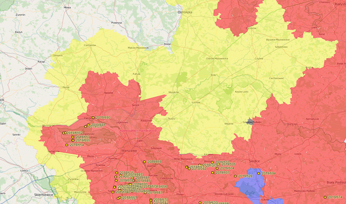 Powiatowy Inspektorat Weterynarii prowadzi również badania monitoringowe dzików w kierunku ASF. W 2018 r. zbadał 34 dziki zabite w wyniku wypadków komunikacyjnych, 273 odstrzelone przez myśliwych oraz pobrał 1133 próbki od świń w strefie czerwonej. Wszystkie wyniki były ujemne.