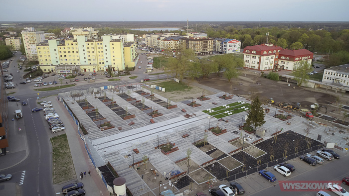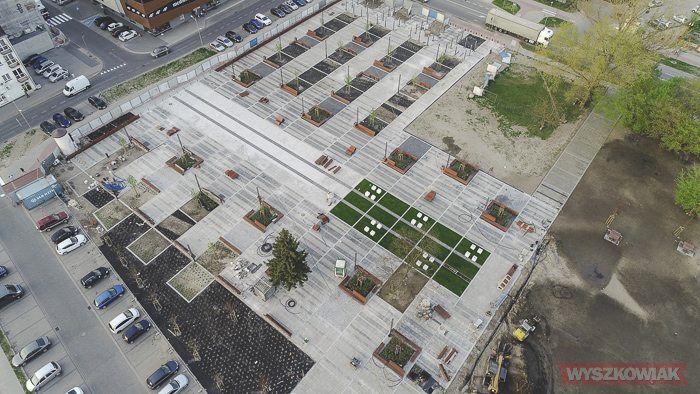 (Zam: 26.04.2019 r., godz. 11.24)Wykonawca, zgodnie z umową z Urzędem Miejskim, do końca maja ma zrealizować roboty. Plac powoli nabiera ostatecznego kształtu, już teraz przykuwa uwagę przechodniów. Wykonawca sadzi zieleń, czego póki co nie ułatwia wietrzna pogoda i susza. Prowadzone są także prace związane m.in. z zainstalowaniem monitoringu.