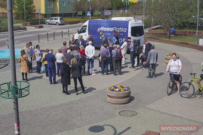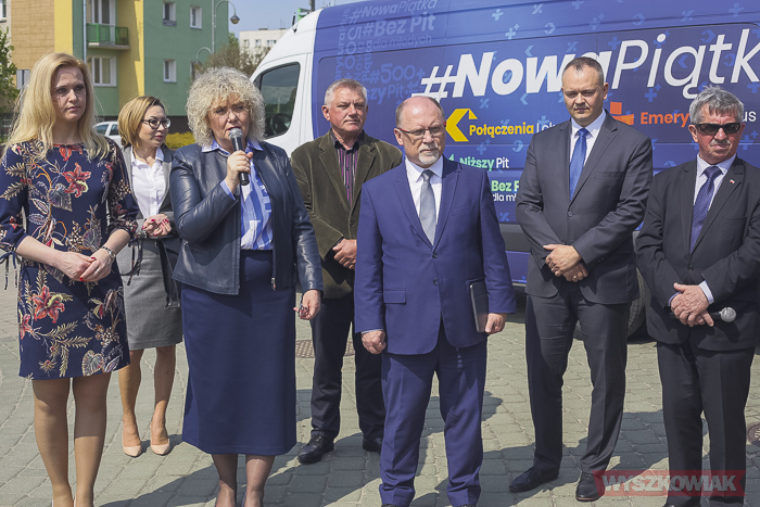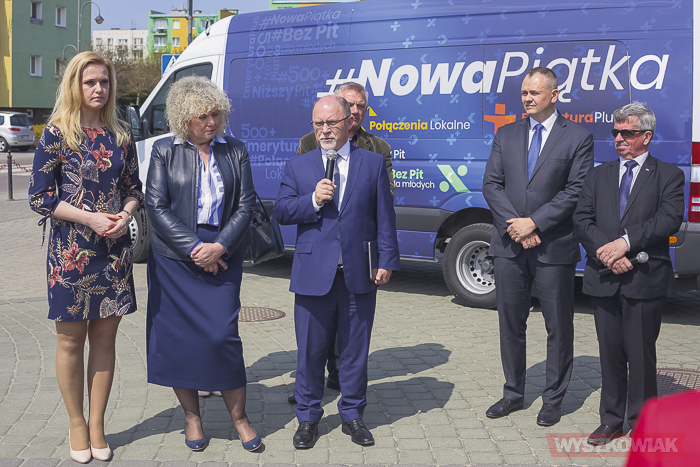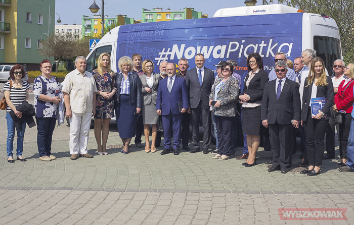 (Zam: 30.04.2019 r., godz. 09.56)Akcja informacyjna #NowaPiątka odbywa się w regionie od wielu tygodni. Przedstawiciele Urzędu Wojewódzkiego odwiedzają większe i mniejsze miejscowości na Mazowszu, by przekazywać informacje o tzw. piątce Kaczyńskiego, czyli pakiecie rozwiązań, które mają wejść w życie w najbliższych miesiącach. Jednym z nich jest 13. emerytura, która będzie wypłacona seniorom w maju. Wojewoda w poniedziałek 29 kwietnia odwiedził Brańszczyk (plac obok urzędu gminy), Somiankę (teren obok ośrodka zdrowia) i Wyszków (plac obok fontanny przy ul. Sowińskiego). Gościł też w siedzibie Starostwa Powiatowego, gdzie spotkał się z samorządowcami i odbył krótką konferencje prasową.