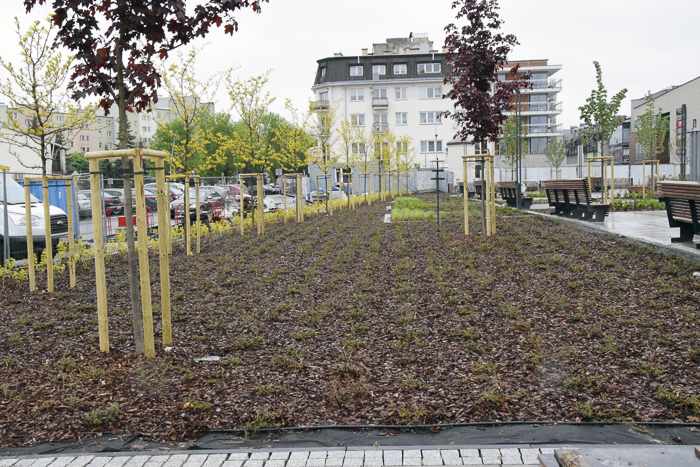 wymęczona, wyciśnięta z betonu roślinność - dużo do roboty dla ogrodników, mało korzyści dla mieszkańców