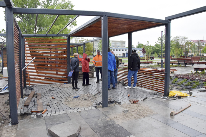 (Zam: 17.05.2019 r., godz. 09.00)Przedstawiciele Urzędu Miejskiego m.in. naczelnik wydziału inwestycji i bezpieczeństwa Adam Mróz oraz naczelnik wydziału gospodarski komunalnej, mieszkalnictwa i rolnictwa Robert Garbarczyk 16 maja przeprowadzili kontrolę prac wykonywanych na placu. Według szacunków przedstawicieli Urzędu, proces uzyskiwania zezwoleń na oddanie placu do użytku powinien zakończyć się do końca czerwca.