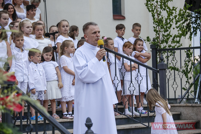 - Dzisiejsze nasze spotkanie rozpocząłem od znamiennych słów, które usłyszeliśmy przed czterdziestoma laty. Wielki Papież, nasz rodak św. Jan Paweł II wypowiedział je na placu Zwycięstwa. Wtedy udzielił mocy Ducha Świętego naszemu narodowi, odbyło się niejako bierzmowanie naszego narodu. Przez te słowa Duch Święty zmieniał oblicze tej ziemi. Rzeczy niemożliwe stały się możliwe, Polska przemieniała się, wyszła ze szpon komunizmu, stała się wolną ojczyzną - podkreślił proboszcz. - Dziś w ten uroczysty dzień Bożego Ciała pragniemy podziękować Bogu za tamto wydarzenie sprzed czterdziestu lat, za naszego wielkiego rodaka, który zmienił oblicze polskiej ziemi, ale też Europy i świata.