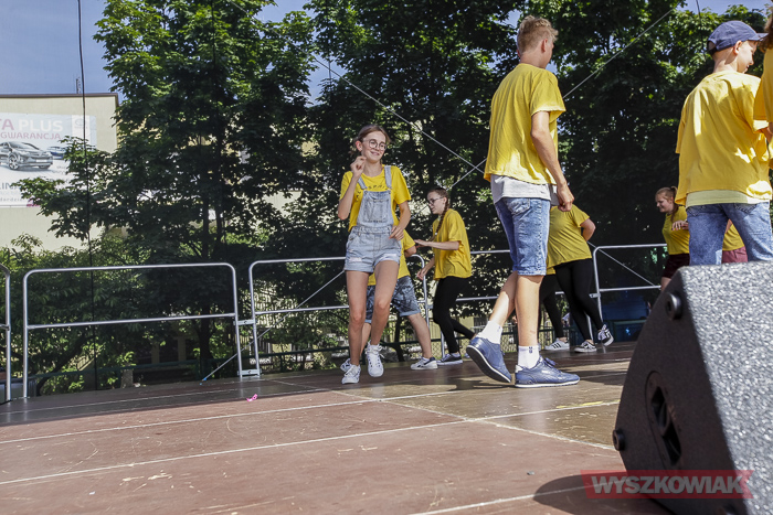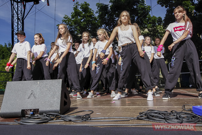 Blanka Malinowska zapowiedziała kolejne grupy tancerzy - podopiecznych jej Studia Tańca FEN. Podzieleni na grupy wiekowe zaprezentowali nowoczesny taniec do najnowszych hitów muzycznych. Blanka Malinowska zachęcała do nagradzania brawami młodzieży, która mimo upału na scenie dała z siebie wszystko.