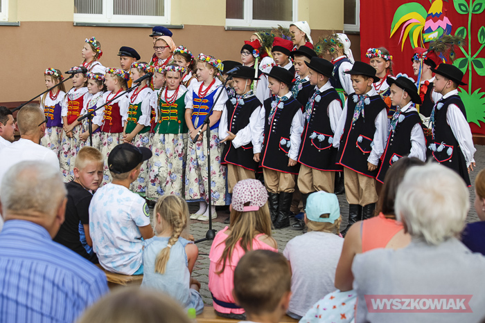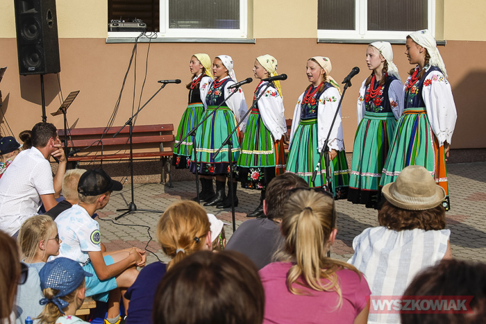 (Zam: 24.06.2019 r., godz. 14.26)Zespół zainaugurował występ pieśnią „Poloneza tańczmy” oraz suitą tańców opoczyńskich. Wśród publiczności byli bliscy występujących, dawni członkowie zespołu, przyjaciele szkoły, przedstawiciele władz samorządowych, instytucji i in. Koncert na placu szkolnym był w zamyśle organizatorów okazjonalną lekcją muzyki - młodzież przed prezentacją tańców omawiała poszczególne style i ich historię.