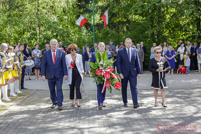 (Zam: 16.08.2019 r., godz. 09.02)W intencji Ojczyzny modlili się w kościele, skąd przeszli pod pomnik Polaków zamordowanych przez bolszewicką czerezwyczajkę. Tam krótką modlitwę poprowadził proboszcz ks. Jarosław Balikowski. Pamięć zamordowanych i tych, którzy zginęli w wojnie polsko-bolszewickiej uczcili składając wieńce i znicze pod pomnikiem. O jego historii oraz walczących można było dowiedzieć się dzięki plenerowej wystawie, którą ptrzygotowała Miejsko-Gminna Biblioteka Publiczna. Oprawę muzyczną uroczystości zapewniła Młodzieżowa Orkiestra Dęta Ochotniczej Straży Pożarnej grająca pod dyrekcją Franciszka Józefa Bieganowskiego.