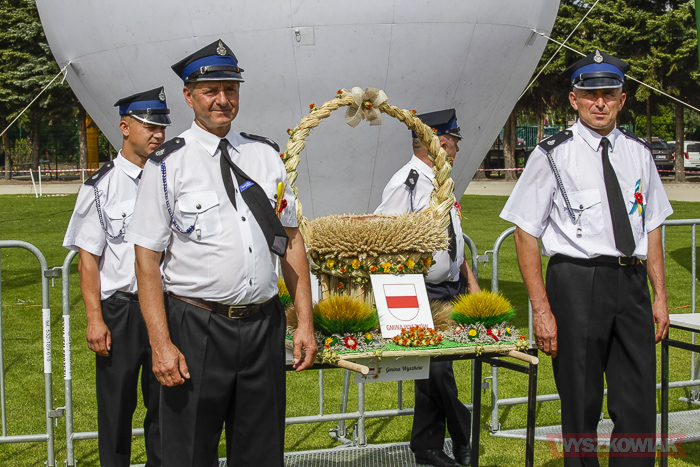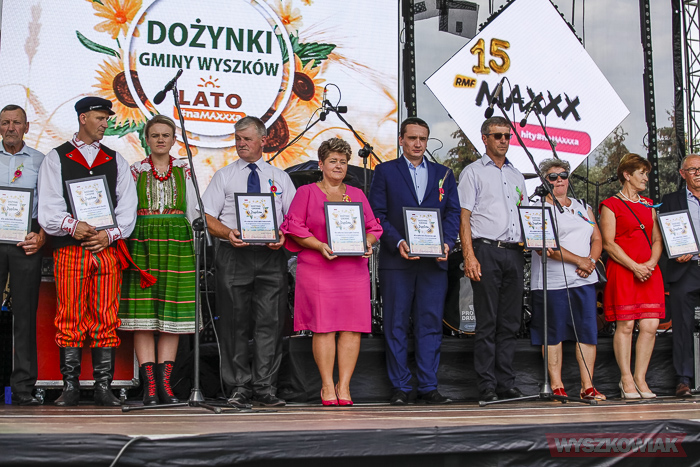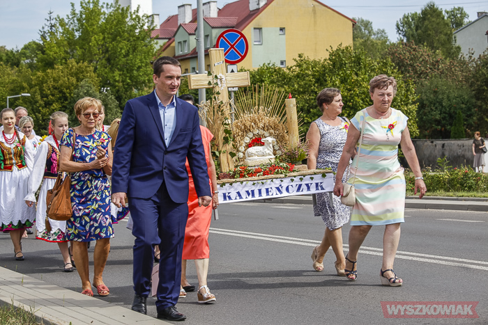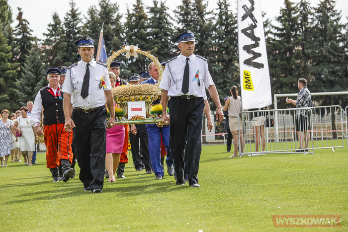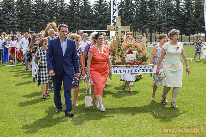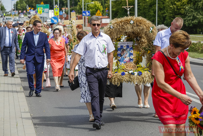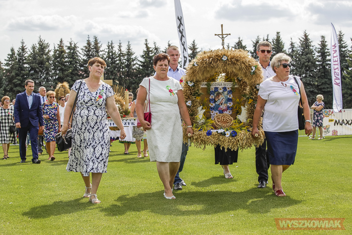 Funkcję starostów dożynek pełnili sołtys Leszczydołu-Nowin Bożena Grzegorczyk wraz z mężem Jackiem Grzegorczykiem. Starostą bartnym był Bartłomiej Durka, któremu asystowali Jakub Filipowicz i Ryszard Durka. W korowodzie, który kierował się z kościoła na stadion, szły delegacje 11 sołectw niosące wieńce i koszyki dożynkowe. Był też wieniec gminy Wyszków niesiony w asyście strażaków ochotników.