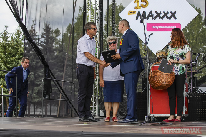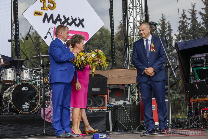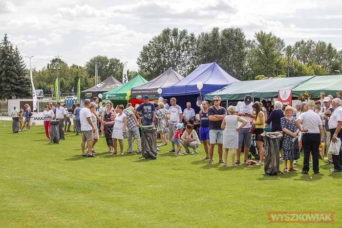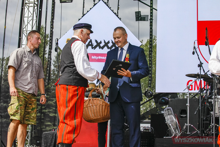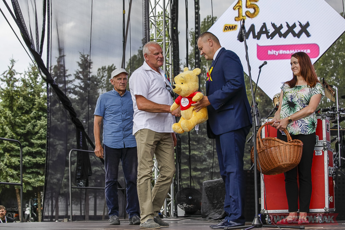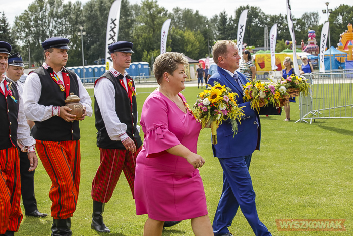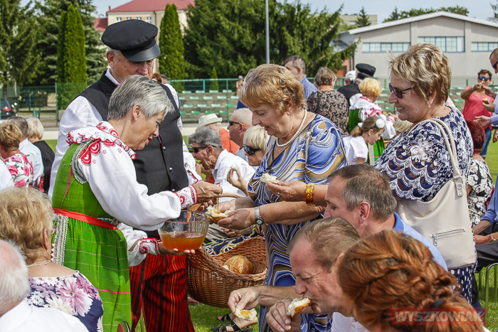 Podczas ceremonii odbywającej się na stadionie WOSiR starości dożynkowi oraz pszczelarze przekazali burmistrzowi chleb i miód, którymi następnie podzielił się z uczestnikami uroczystości.