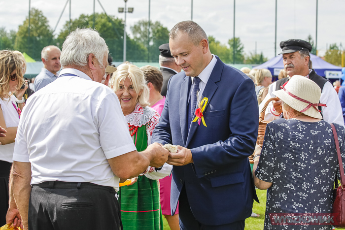 - Każdego roku podczas dożynek dzielę się z państwem bochenkiem i mam poczucie, że ten gest braterstwa, przyjaźni, chęci przyjścia z pomocą jak żaden inny zbliża ludzi do siebie. Jest w nim serdeczność i szczerość. Towarzyszy mu wzruszenie i powaga, a smak chleba, którym się dzielimy, nie ma sobie równych - podkreślił. - Dziś także dzielę się z państwem dumą z naszej małej ojczyzny, radością, że jesteśmy wspólnotą solidarną i roztropną, wdzięcznością za troskę o to, co nasze. Chylę czoła przed cierpliwą pracą, ale także tradycją, która wiedzie nas co roku na dożynkowe święto. Tradycja jest fundamentem społeczeństwa, daje poczucie bezpieczeństwa i wspólnoty. Dbajmy o nasze polskie tradycje, bo dają nam siłę i tożsamość. Dzielę się z państwem chlebem jak z rodziną, bo jest nią gminna wspólnota, którą tworzymy. Tu zawsze musi być wzajemny szacunek i życzliwość, dbałość o wspólne dobro i troska o sąsiada. Pomimo różnic, z poszanowaniem odmiennych poglądów, z wyrozumiałością dla słabości musimy zawsze trzymać się razem, umieć ze sobą rozmawiać, umieć sobie wybaczać, wyciągać pomocną dłoń.