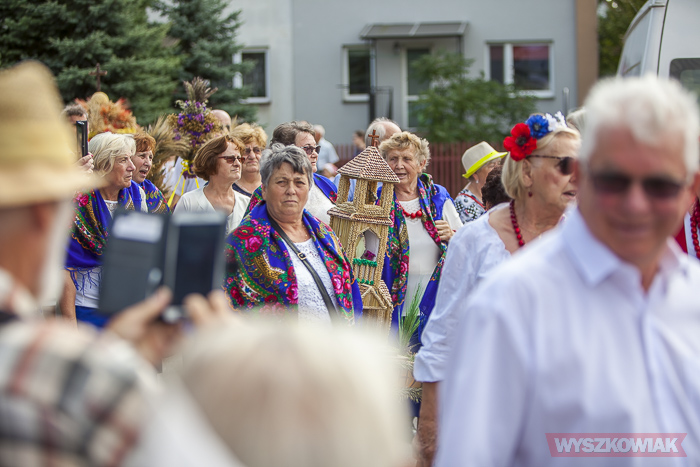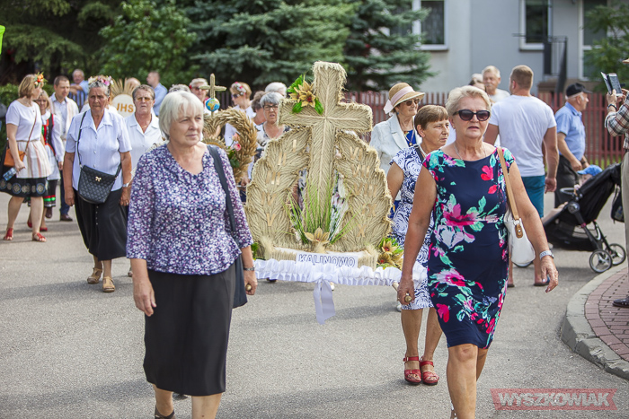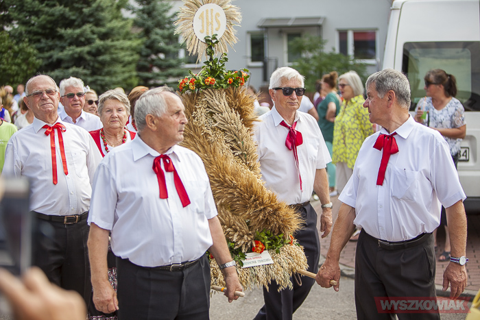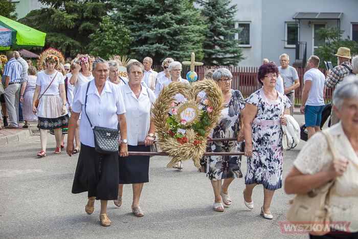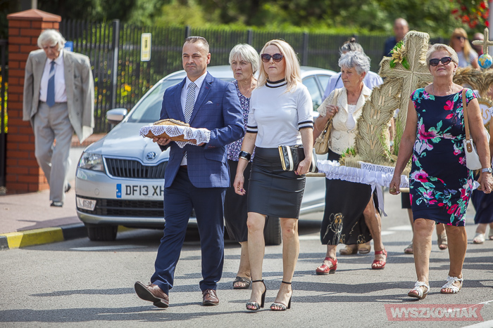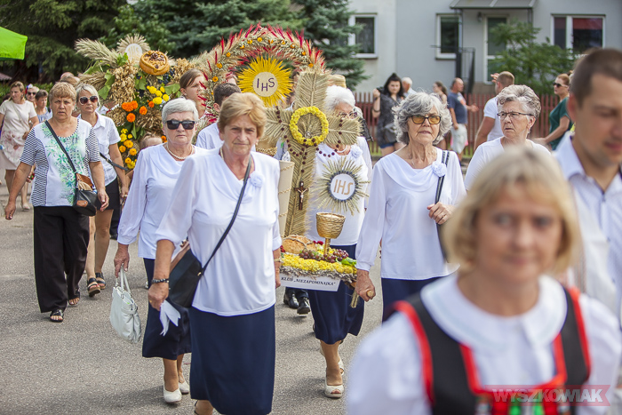 (Zam: 20.08.2019 r., godz. 10.32)Po mszy odprawionej w miejscowym kościele uczestnicy przeszli na miejsce uroczystości. Zgromadzonym przygrywała kapela Puszcza Biała (Stanisław Mierzejewski, Ryszard Długołęcki, Krystyna Krawczyk, Andrzej Gałązka). Starostami dożynek byli Danuta i Tomasz Kępkowie, którzy przekazali wójtowi Stanisławowi Jastrzębskiemu chleb.